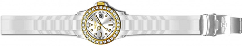 Band For Lady Invicta I by Invicta IBI10067-006, Band Material Polyurethane, Band Color White, Band Width 20 MM, Band Length 208 MM, Buckle Type Diver, Clasp Type , Safety. Please note that bands do not ship with spring bars or T bars. If you need these parts, please add them to your cart with the corresponding part sku.