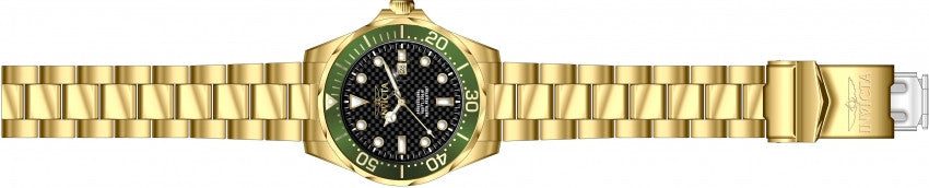 Band for Invicta Pro Diver 14358, Band Material: Stainless Steel, Band Color: Gold, Band Width: 22mm, Band Length: 215mm, Buckle Type: Diver, Clasp Type: Foldover, Safety. Please note that bands do not ship with spring bars or T bars. If you need these parts, please add them to your cart with the corresponding part sku.