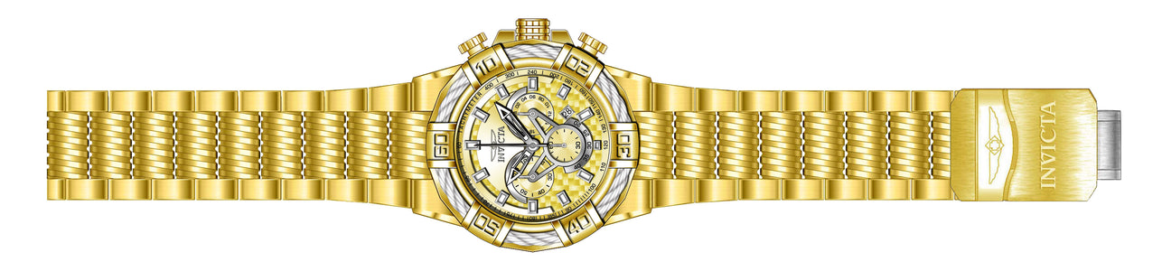 INVICTA Bolt Men 52mm Stainless Steel Gold Gold dial VD53 Quartz , Band Material: Stainless Steel, Band Tone: Gold, Band Size [mm]: 30, Band Length [mm]: 185, Buckle Type: Fold over safety , Crown Type : Push, Case Material : Stainless Steel, Case Tone : Gold, Case Size (mm) : 52, Case Back : Solid, Material of Hands : Metal, Color of Hands : Gold, Crystal Type : Flame Fusion, Bezel Material : Stainless Steel,Cable, Dial Material : Glass Fiber, Dial Color : Gold, Dial Pattern : Textured Pattern .Purchasing these parts and having a non-authorized repair center open your watch voids all manufacturing warranties. Invicta cannot guarantee the quality standards of an altered timepiece, the standard 3-year limited warranty on Invicta timepieces shall be invalid if the timepiece is serviced at any time by an unauthorized repair center. This includes battery replacements, which must be done at an Invicta authorized repair center in order to maintain the eligibility of the warranty. Please follow the link below to learn more about Invicta's warranty.https://cdn.invictawatch.com/www/files/invicta-warranty-2018.pdf