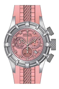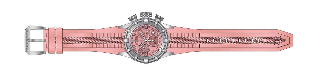 INVICTA Reserve Men 50mm Stainless Steel Steel Pink dial Z60 Quartz , Band Material: Silicone, Band Tone: Pink, Band Size [mm]: 32, Band Length [mm]: 205, Buckle Type: Buckle , Crown Type : Push, Case Material : Stainless Steel, Case Tone : Steel, Case Size (mm) : 50, Case Back : Solid, Material of Hands : Metal, Color of Hands : Luminous,Pink, Crystal Type : Flame Fusion, Bezel Material : Stainless Steel, Dial Material : Metal, Dial Color : Pink, Dial Pattern : Sun-ray Finish .Purchasing these parts and having a non-authorized repair center open your watch voids all manufacturing warranties. Invicta cannot guarantee the quality standards of an altered timepiece, the standard 3-year limited warranty on Invicta timepieces shall be invalid if the timepiece is serviced at any time by an unauthorized repair center. This includes battery replacements, which must be done at an Invicta authorized repair center in order to maintain the eligibility of the warranty. Please follow the link below to learn more about Invicta's warranty.https://cdn.invictawatch.com/www/files/invicta-warranty-2018.pdf