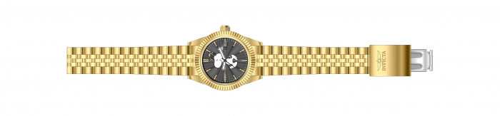 Band for Invicta Character Collection 24806, Band Material: Stainless Steel, Band Color: Gold, Band Size (in mm): 18, Band Length (in mm): 195, Buckle Type: Diver, Clasp Type: Foldover. Please note that bands do not ship with spring bars or T bars. If you need these parts, please add them to your cart with the corresponding part sku.