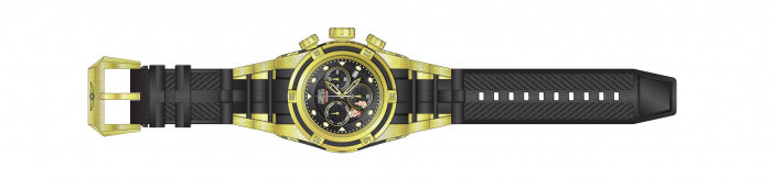 Band for Invicta Character Collection 24896, Band Material: Silicone, Stainless Steel, Band Color: Gold, Black, Band Size (in mm): 36.8, Band Length (in mm): 210, Buckle Type: Regular, Clasp Type: 0. Please note that bands do not ship with spring bars or T bars. If you need these parts, please add them to your cart with the corresponding part sku.