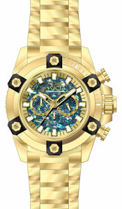 INVICTA Coalition Forces Men 56mm Stainless Steel Gold Blue dial VD53 Quartz , Band Material: Stainless Steel, Band Tone: Gold, Band Size [mm]: 31, Band Length [mm]: 220, Buckle Type: Fold over safety , Crown Type : Push, Case Material : Stainless Steel, Case Tone : Gold, Case Size (mm) : 56, Case Back : Solid, Material of Hands : Metal, Color of Hands : Gold,Luminous, Crystal Type : Flame Fusion, Bezel Material : Stainless Steel, Dial Material : Mother of Pearl,Abalone, Dial Color : Blue, Dial Pattern : None .Purchasing these parts and having a non-authorized repair center open your watch voids all manufacturing warranties. Invicta cannot guarantee the quality standards of an altered timepiece, the standard 3-year limited warranty on Invicta timepieces shall be invalid if the timepiece is serviced at any time by an unauthorized repair center. This includes battery replacements, which must be done at an Invicta authorized repair center in order to maintain the eligibility of the warranty. Please follow the link below to learn more about Invicta's warranty.https://cdn.invictawatch.com/www/files/invicta-warranty-2018.pdf