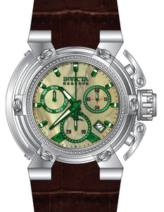 Band Material: Leather, Band Tone: Brown, Band Width: 35.7MM, Band Length: 210MM, Crown Type: Screw Down, Case Material: Stainless Steel,Diamond, Case Tone: White,Steel, Case Size [mm]: 46, Case Back: Solid, Material of Hands: Metal, Color of Hands: Green,Luminous, Crystal Type: Flame Fusion, Bezel Material: Stainless Steel,Diamond, Dial Material: Metal,Mother of Pearl,Oyster, Dial Color: Champagne,Green, Dial Pattern: None .Purchasing these parts and having a non-authorized repair center open your watch voids all manufacturing warranties. Invicta cannot guarantee the quality standards of an altered timepiece, the standard 3-year limited warranty on Invicta timepieces shall be invalid if the timepiece is serviced at any time by an unauthorized repair center. This includes battery replacements, which must be done at an Invicta authorized repair center in order to maintain the eligibility of the warranty. Please follow the link below to learn more about Invicta's warranty.https://cdn.invictawatch.com/www/files/invicta-warranty-2018.pdf