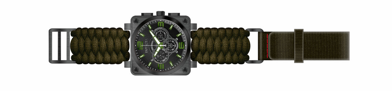 INVICTA Corduba Men 46mm Stainless Steel Black Black dial VD54 Quartz , Band Material: Nylon, Band Tone: Green, Band Size [mm]: 24, Band Length [mm]: 215, Buckle Type: Buckle , Crown Type:Push, Case Material:Stainless Steel, Case Tone:Black, Case Size (mm):46, Case Back:Solid, Material of Hands:Metal, Color of Hands:Green,Luminous, Crystal Type:Flame Fusion, Bezel Material:None, Dial Material:Metal, Dial Color:Black, Dial Pattern:None .Purchasing these parts and having a non-authorized repair center open your watch voids all manufacturing warranties. Invicta cannot guarantee the quality standards of an altered timepiece, the standard 3-year limited warranty on Invicta timepieces shall be invalid if the timepiece is serviced at any time by an unauthorized repair center. This includes battery replacements, which must be done at an Invicta authorized repair center in order to maintain the eligibility of the warranty. Please follow the link below to learn more about Invicta's warranty.https://cdn.invictawatch.com/www/files/invicta-warranty-2018.pdf