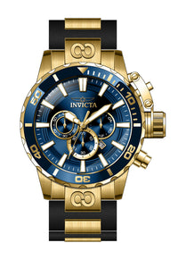 INVICTA Corduba Men 52mm Stainless Steel Gold Blue dial VD53 Quartz , Band Material: Stainless Steel,Polyurethane, Band Tone: Gold,Black, Band Size [mm]: 28, Band Length [mm]: 185, Buckle Type: Fold over safety , Crown Type : Push, Case Material : Stainless Steel, Case Tone : Gold, Case Size (mm) : 52, Case Back : Solid, Material of Hands : Metal, Color of Hands : Gold, Crystal Type : Flame Fusion, Bezel Material : Stainless Steel, Dial Material : Metal, Dial Color : Blue, Dial Pattern : Sun-ray Finish .Purchasing these parts and having a non-authorized repair center open your watch voids all manufacturing warranties. Invicta cannot guarantee the quality standards of an altered timepiece, the standard 3-year limited warranty on Invicta timepieces shall be invalid if the timepiece is serviced at any time by an unauthorized repair center. This includes battery replacements, which must be done at an Invicta authorized repair center in order to maintain the eligibility of the warranty. Please follow the link below to learn more about Invicta's warranty.https://cdn.invictawatch.com/www/files/invicta-warranty-2018.pdf