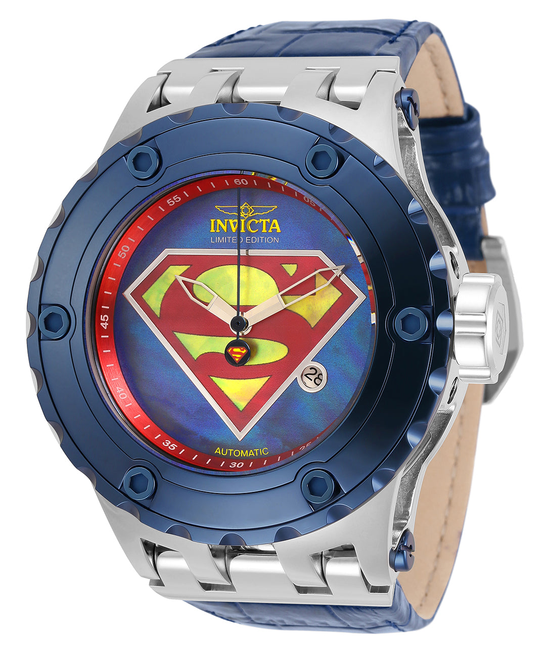 Band For Invicta DC Comics 30113, Band Material Stainless Steel, Leather, Band Tone Steel, Blue, Band Width 31MM, Band Length 210MM, Buckle Type Buckle, Clasp Type Regular,
