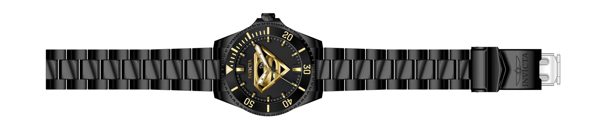 Individual Spare PARTS For Invicta DC Comics 26897, Band Material: Stainless Steel, Band Tone: Black, Band Size (mm): 22, Band Length (mm): 225, Buckle Type: Diver, Clasp Type: Foldover, Safety, Crown Type Push, Case Material Stainless Steel, Case Tone Black, Case Size (mm) 47, Case Back Exhibition, Material of Hands Metal, Color of Hands Gold, Luminous, Crystal Type Mineral, Bezel Material Stainless Steel, Dial Material Metal, Dial Color Black, Dial Pattern SunrayPurchasing these parts and having a non-authorized repair center open your watch voids all manufacturing warranties. Invicta cannot guarantee the quality standards of an altered timepiece, the standard 3-year limited warranty on Invicta timepieces shall be invalid if the timepiece is serviced at any time by an unauthorized repair center. This includes battery replacements, which must be done at an Invicta authorized repair center in order to maintain the eligibility of the warranty. Please follow the link below to learn more about Invicta's warranty.https://cdn.invictawatch.com/www/files/invicta-warranty-2018.pdf