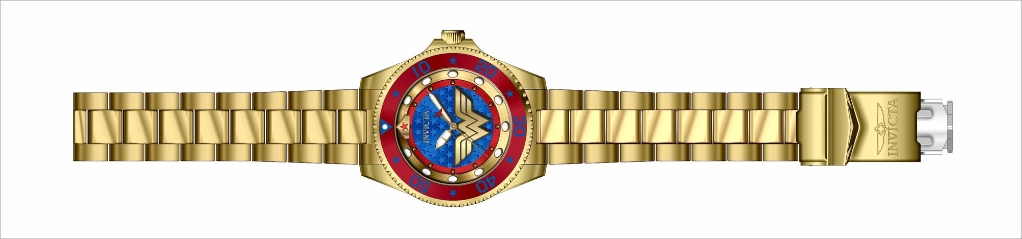 Individual Spare PARTS For Invicta DC Comics 27137, Band Material: Stainless Steel, Band Tone: Gold, Band Size (mm): 22, Band Length (mm): 225, Buckle Type: Diver, Clasp Type: Foldover, Safety, Crown Type Push, Case Material Stainless Steel, Case Tone Gold, Case Size (mm) 47, Case Back Exhibition, Material of Hands Metal, Color of Hands Gold, Luminous, Crystal Type Mineral, Bezel Material Stainless Steel, Dial Material Metal, Dial Color Blue, Dial Pattern TexturedPurchasing these parts and having a non-authorized repair center open your watch voids all manufacturing warranties. Invicta cannot guarantee the quality standards of an altered timepiece, the standard 3-year limited warranty on Invicta timepieces shall be invalid if the timepiece is serviced at any time by an unauthorized repair center. This includes battery replacements, which must be done at an Invicta authorized repair center in order to maintain the eligibility of the warranty. Please follow the link below to learn more about Invicta's warranty.https://cdn.invictawatch.com/www/files/invicta-warranty-2018.pdf