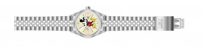 Band for Invicta Disney Limited Edition 22769, Band Material: Stainless Steel, Band Tone: Steel, Band Size: 20mm, Band Length: 210mm, Buckle Type: Diver, Clasp Type: Foldover. Please note that bands do not ship with spring bars or T bars. If you need these parts, please add them to your cart with the corresponding part sku.