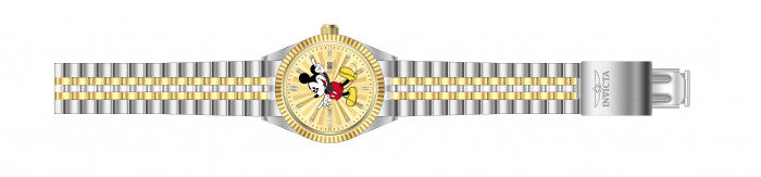 Band for Invicta Disney Limited Edition 22772, Band Material: Stainless Steel, Band Tone: Steel, Gold, Band Size: 20mm, Band Length: 210mm, Buckle Type: Diver, Clasp Type: Foldover. Please note that bands do not ship with spring bars or T bars. If you need these parts, please add them to your cart with the corresponding part sku.