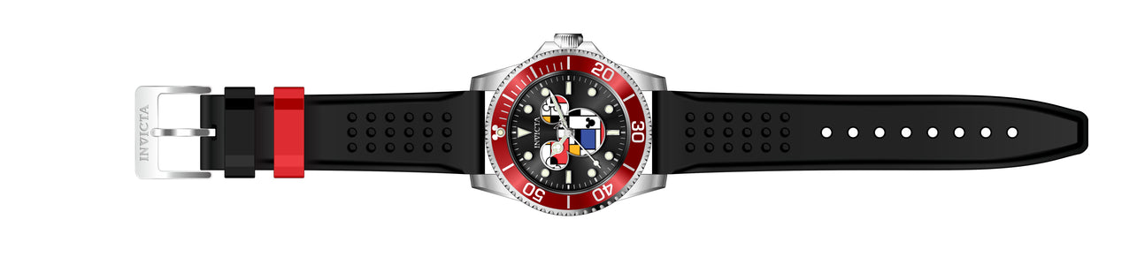 INVICTA Disney Limited Edition Men 44mm Stainless Steel Steel Black dial PC21J Quartz , Band Material: Silicone, Band Tone: Black,Red, Band Size [mm]: 22, Band Length [mm]: 195, Buckle Type: Buckle , Crown Type : Push, Case Material : Stainless Steel, Case Tone : Steel, Case Size (mm) : 44, Case Back : Solid, Material of Hands : Metal, Color of Hands : Silver,Luminous, Crystal Type : Mineral, Bezel Material : Stainless Steel, Dial Material : Metal, Dial Color : Black, Dial Pattern : Sun-ray Finish .Purchasing these parts and having a non-authorized repair center open your watch voids all manufacturing warranties. Invicta cannot guarantee the quality standards of an altered timepiece, the standard 3-year limited warranty on Invicta timepieces shall be invalid if the timepiece is serviced at any time by an unauthorized repair center. This includes battery replacements, which must be done at an Invicta authorized repair center in order to maintain the eligibility of the warranty. Please follow the link below to learn more about Invicta's warranty.https://cdn.invictawatch.com/www/files/invicta-warranty-2018.pdf