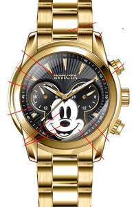 INVICTA Disney Limited Edition Men 44mm Stainless Steel Gold Black+White dial VD32 Quartz , Band Material: Stainless Steel, Band Tone: Gold, Band Size [mm]: 22, Band Length [mm]: 190, Buckle Type: Fold over safety , Crown Type : Push, Case Material : Stainless Steel, Case Tone : Gold, Case Size (mm) : 44, Case Back : Solid, Material of Hands : Metal, Color of Hands : Gold, Crystal Type : Flame Fusion, Bezel Material : Stainless Steel, Dial Material : Metal, Dial Color : Black,White .Purchasing these parts and having a non-authorized repair center open your watch voids all manufacturing warranties. Invicta cannot guarantee the quality standards of an altered timepiece, the standard 3-year limited warranty on Invicta timepieces shall be invalid if the timepiece is serviced at any time by an unauthorized repair center. This includes battery replacements, which must be done at an Invicta authorized repair center in order to maintain the eligibility of the warranty. Please follow the link below to learn more about Invicta's warranty.https://cdn.invictawatch.com/www/files/invicta-warranty-2018.pdf