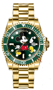 INVICTA Disney Limited Edition Men 40mm Stainless Steel Gold Black+White+Red+Yellow+Green dial PC32 Quartz , Band Material: Stainless Steel, Band Tone: Gold, Band Size [mm]: 20, Band Length [mm]: 200, Buckle Type: Fold over safety , Crown Type : Push, Case Material : Stainless Steel, Case Tone : Gold, Case Size (mm) : 40, Case Back : Solid, Material of Hands : Metal, Color of Hands : Gold, Crystal Type : Flame Fusion, Bezel Material : Stainless Steel, Dial Material : Metal, Dial Color : Black,White,Red,Yellow,Green, Dial Pattern : Sun-ray Finish .Purchasing these parts and having a non-authorized repair center open your watch voids all manufacturing warranties. Invicta cannot guarantee the quality standards of an altered timepiece, the standard 3-year limited warranty on Invicta timepieces shall be invalid if the timepiece is serviced at any time by an unauthorized repair center. This includes battery replacements, which must be done at an Invicta authorized repair center in order to maintain the eligibility of the warranty. Please follow the link below to learn more about Invicta's warranty.https://cdn.invictawatch.com/www/files/invicta-warranty-2018.pdf