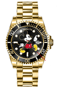 INVICTA Disney Limited Edition Men 40mm Stainless Steel Gold Black+White+Red+Yellow dial PC32 Quartz , Band Material: Stainless Steel, Band Tone: Gold, Band Size [mm]: 20, Band Length [mm]: 200, Buckle Type: Fold over safety , Crown Type : Push, Case Material : Stainless Steel, Case Tone : Gold, Case Size (mm) : 40, Case Back : Solid, Material of Hands : Metal, Color of Hands : Gold, Crystal Type : Flame Fusion, Bezel Material : Stainless Steel, Dial Material : Metal, Dial Color : Black,White,Red,Yellow, Dial Pattern : Sun-ray Finish .Purchasing these parts and having a non-authorized repair center open your watch voids all manufacturing warranties. Invicta cannot guarantee the quality standards of an altered timepiece, the standard 3-year limited warranty on Invicta timepieces shall be invalid if the timepiece is serviced at any time by an unauthorized repair center. This includes battery replacements, which must be done at an Invicta authorized repair center in order to maintain the eligibility of the warranty. Please follow the link below to learn more about Invicta's warranty.https://cdn.invictawatch.com/www/files/invicta-warranty-2018.pdf