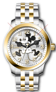 INVICTA Disney Limited Edition Men 45mm Stainless Steel Silver Silver dial VJ42 Quartz , Band Material: Stainless Steel, Band Tone: Steel,Gold, Band Size [mm]: 22, Band Length [mm]: 200, Buckle Type: Butterfly push button , Crown Type : Push, Case Material : Stainless Steel, Case Tone : Silver, Case Size (mm) : 45, Case Back : Solid, Material of Hands : Metal, Color of Hands : Black, Crystal Type : Flame Fusion, Bezel Material : Stainless Steel, Dial Material : Metal, Dial Color : Silver .Purchasing these parts and having a non-authorized repair center open your watch voids all manufacturing warranties. Invicta cannot guarantee the quality standards of an altered timepiece, the standard 3-year limited warranty on Invicta timepieces shall be invalid if the timepiece is serviced at any time by an unauthorized repair center. This includes battery replacements, which must be done at an Invicta authorized repair center in order to maintain the eligibility of the warranty. Please follow the link below to learn more about Invicta's warranty.https://cdn.invictawatch.com/www/files/invicta-warranty-2018.pdf
