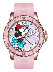 INVICTA Disney Limited Edition Lady 40mm Stainless Steel Rose Gold White dial PC32 Quartz , Band Material: Silicone, Band Tone: Pink, Band Size [mm]: 20, Band Length [mm]: 210, Buckle Type: Buckle , Crown Type : Push, Case Material : Stainless Steel, Case Tone : Rose Gold, Case Size (mm) : 40, Case Back : Solid, Material of Hands : Metal, Color of Hands : Rose Gold, Crystal Type : Flame Fusion, Bezel Material : Stainless Steel,Aluminum, Dial Material : Metal,Mother of Pearl, Dial Color : White .Purchasing these parts and having a non-authorized repair center open your watch voids all manufacturing warranties. Invicta cannot guarantee the quality standards of an altered timepiece, the standard 3-year limited warranty on Invicta timepieces shall be invalid if the timepiece is serviced at any time by an unauthorized repair center. This includes battery replacements, which must be done at an Invicta authorized repair center in order to maintain the eligibility of the warranty. Please follow the link below to learn more about Invicta's warranty.https://cdn.invictawatch.com/www/files/invicta-warranty-2018.pdf