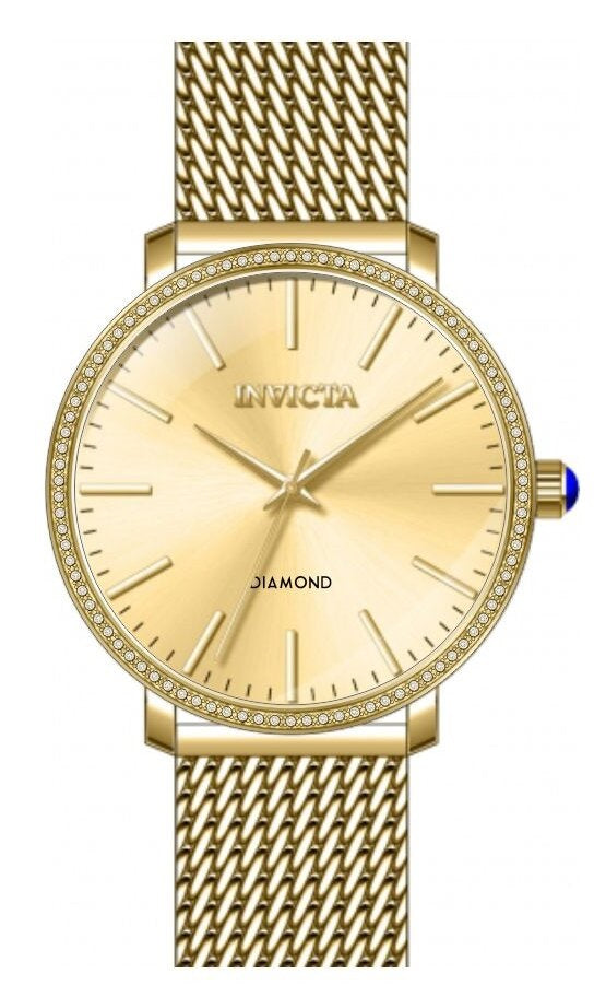 Band Material: Stainless Steel, Band Tone: Gold, Band Width: 18MM, Band Length: 185MM, Crown Type: Push, Case Material: Stainless Steel, Case Tone: Gold, Case Size [mm]: 38, Case Back: Solid, Material of Hands: Brass, Color of Hands: Gold, Crystal Type: Mineral, Bezel Material: Diamond, Dial Material: Brass, Dial Color: Gold, Dial Pattern: Sun-ray Finish .Purchasing these parts and having a non-authorized repair center open your watch voids all manufacturing warranties. Invicta cannot guarantee the quality standards of an altered timepiece, the standard 3-year limited warranty on Invicta timepieces shall be invalid if the timepiece is serviced at any time by an unauthorized repair center. This includes battery replacements, which must be done at an Invicta authorized repair center in order to maintain the eligibility of the warranty. Please follow the link below to learn more about Invicta's warranty.https://cdn.invictawatch.com/www/files/invicta-warranty-2018.pdf
