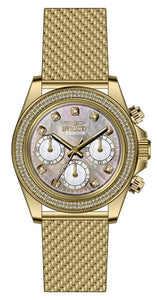 Band Material: Stainless Steel, Band Tone: Gold, Band Width: 20MM, Band Length: 190MM, Crown Type: Push, Case Material: Stainless Steel, Case Tone: Gold, Case Size [mm]: 38, Case Back: Solid, Material of Hands: Brass, Color of Hands: Gold,Luminous, Crystal Type: Mineral, Bezel Material: Stainless Steel,Diamond, Dial Material: Mother of Pearl, Dial Color: White,Pink, Dial Pattern: None .Purchasing these parts and having a non-authorized repair center open your watch voids all manufacturing warranties. Invicta cannot guarantee the quality standards of an altered timepiece, the standard 3-year limited warranty on Invicta timepieces shall be invalid if the timepiece is serviced at any time by an unauthorized repair center. This includes battery replacements, which must be done at an Invicta authorized repair center in order to maintain the eligibility of the warranty. Please follow the link below to learn more about Invicta's warranty.https://cdn.invictawatch.com/www/files/invicta-warranty-2018.pdf