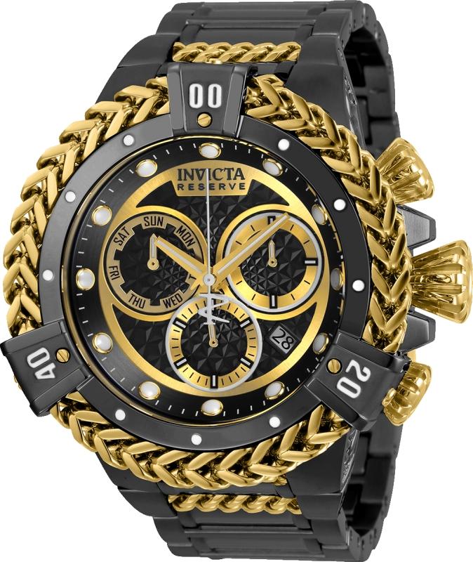 Individual Spare PARTS For Invicta Reserve 30546, Band Material Stainless Steel, Band Tone Gold, Black, Band Width 31MM, Band Length 210MM, Buckle Type Fold over safety, Clasp Type Safety, Deployment, Crown Type (Movement 1) Screw Down, Case Material Stainless Steel, Case Tone Gold, Black, Case Size (mm) 53, Case Back Solid, Material of Hands Metal, Color of Hands Gold, Luminous, Crystal Type Flame Fusion, Bezel Material Stainless Steel, Dial Material Metal, Dial Color Black, Gold, Dial Pattern Textured