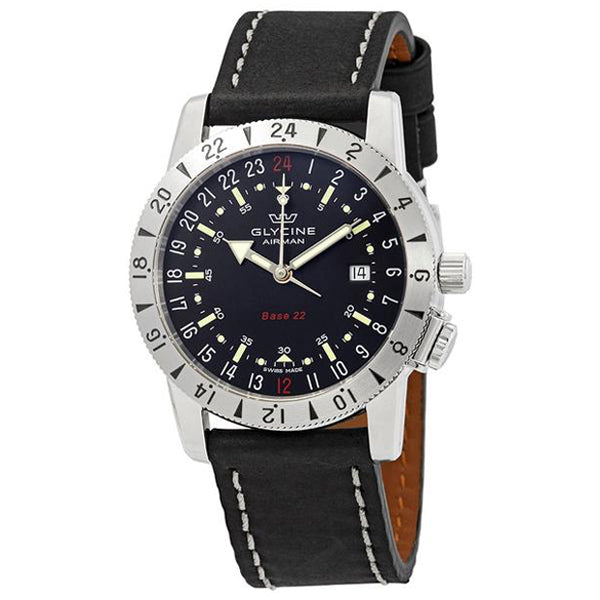 Band for Glycine Airman GL0208, Band Material: Leather Band Color: Black Band Width (mm): 22 Band Length (mm): 200 Buckle Type: Regular