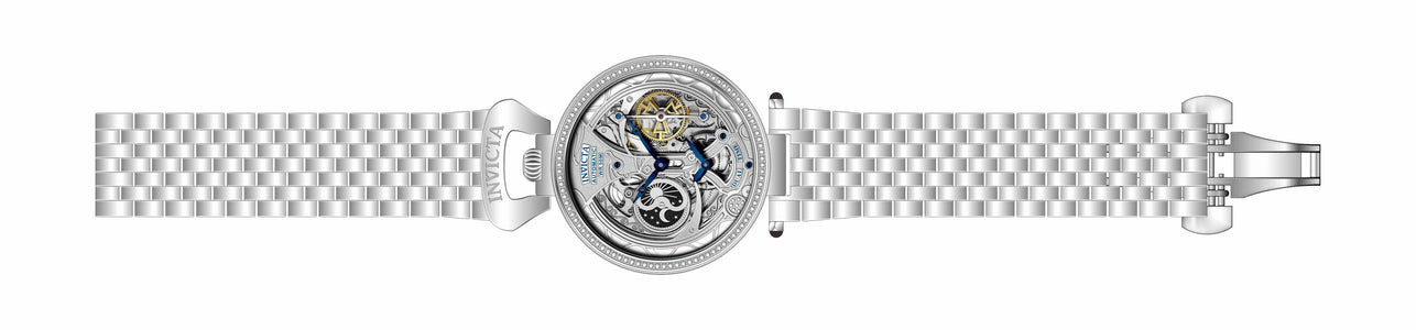 INVICTA Objet D Art Men 46mm Stainless Steel Steel Silver dial Z-2031 (Nickel) Automatic , Band Material: Stainless Steel, Band Tone: Steel, Band Size [mm]: 24, Band Length [mm]: 205, Buckle Type: Butterfly push button , Crown Type : Push, Case Material : Stainless Steel, Case Tone : Steel, Case Size (mm) : 46, Case Back : Exhibition, Material of Hands : Metal, Color of Hands : Blue, Crystal Type : Flame Fusion, Bezel Material : Stainless Steel, Dial Material : Metal, Dial Color : Silver, Dial Pattern : None .Purchasing these parts and having a non-authorized repair center open your watch voids all manufacturing warranties. Invicta cannot guarantee the quality standards of an altered timepiece, the standard 3-year limited warranty on Invicta timepieces shall be invalid if the timepiece is serviced at any time by an unauthorized repair center. This includes battery replacements, which must be done at an Invicta authorized repair center in order to maintain the eligibility of the warranty. Please follow the link below to learn more about Invicta's warranty.https://cdn.invictawatch.com/www/files/invicta-warranty-2018.pdf