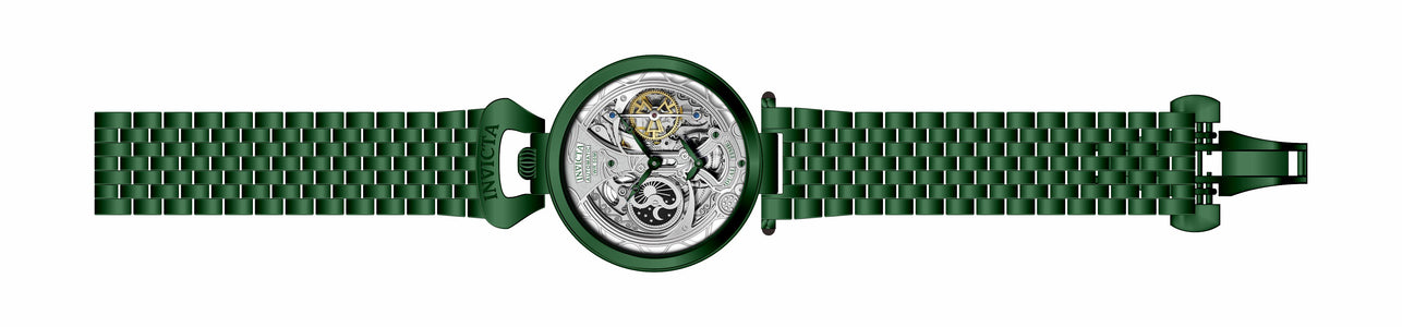 INVICTA Objet D Art Men 46mm Stainless Steel Green Silver dial Z-2031 (Nickel) Automatic , Band Material: Stainless Steel, Band Tone: Green, Band Size [mm]: 24, Band Length [mm]: 205, Buckle Type: Butterfly push button , Crown Type : Push, Case Material : Stainless Steel, Case Tone : Green, Case Size (mm) : 46, Case Back : Exhibition, Material of Hands : Metal, Color of Hands : Green, Crystal Type : Flame Fusion, Bezel Material : Stainless Steel, Dial Material : Metal, Dial Color : Silver, Dial Pattern : None .Purchasing these parts and having a non-authorized repair center open your watch voids all manufacturing warranties. Invicta cannot guarantee the quality standards of an altered timepiece, the standard 3-year limited warranty on Invicta timepieces shall be invalid if the timepiece is serviced at any time by an unauthorized repair center. This includes battery replacements, which must be done at an Invicta authorized repair center in order to maintain the eligibility of the warranty. Please follow the link below to learn more about Invicta's warranty.https://cdn.invictawatch.com/www/files/invicta-warranty-2018.pdf