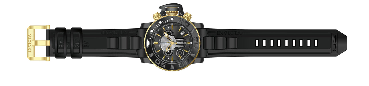 Band Material: Silicone, Band Tone: Black, Band Width: 24MM, Band Length: 225MM, Crown Type: Push, Case Material: Stainless Steel, Case Tone: Black, Gold, Case Size [mm]: 46, Color of Hands: Luminous, Gold, Crystal Type: Flame Fusion, Bezel Material: Stainless Steel, Dial Material: Metal, Dial Color: Black .Purchasing these parts and having a non-authorized repair center open your watch voids all manufacturing warranties. Invicta cannot guarantee the quality standards of an altered timepiece, the standard 3-year limited warranty on Invicta timepieces shall be invalid if the timepiece is serviced at any time by an unauthorized repair center. This includes battery replacements, which must be done at an Invicta authorized repair center in order to maintain the eligibility of the warranty. Please follow the link below to learn more about Invicta's warranty.https://cdn.invictawatch.com/www/files/invicta-warranty-2018.pdf