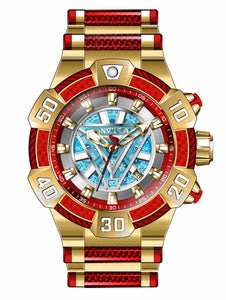 Band Material: Glass Fiber, Stainless Steel, Band Tone: Red, Gold, Band Width: 32MM, Band Length: 190MM, Crown Type: Push, Case Material: Stainless Steel, Case Tone: Gold, Case Size [mm]: 52, Color of Hands: Gold, Red, Crystal Type: Flame Fusion, Bezel Material: Cable, Glass Fiber, Stainless Steel, Dial Material: Plastic, Metal, Dial Color: Red, Silver, Blue .Purchasing these parts and having a non-authorized repair center open your watch voids all manufacturing warranties. Invicta cannot guarantee the quality standards of an altered timepiece, the standard 3-year limited warranty on Invicta timepieces shall be invalid if the timepiece is serviced at any time by an unauthorized repair center. This includes battery replacements, which must be done at an Invicta authorized repair center in order to maintain the eligibility of the warranty. Please follow the link below to learn more about Invicta's warranty.https://cdn.invictawatch.com/www/files/invicta-warranty-2018.pdf