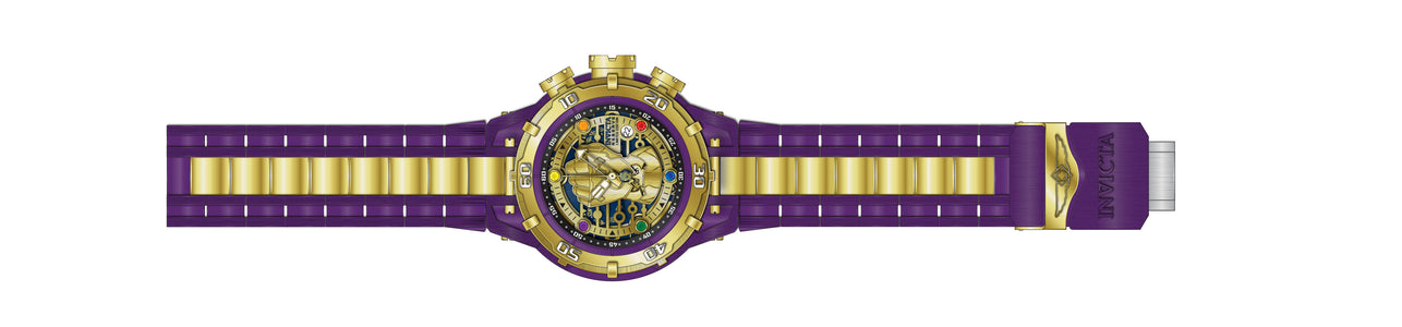 Band Material: Stainless Steel, Band Tone: Purple, Gold, Band Width: 27.5MM, Band Length: 210MM, Crown Type: Screw Down, Case Material: Stainless Steel, Case Tone: Steel, Purple, Gold, Case Size [mm]: 54, Color of Hands: Luminous, Gold, Blue, Crystal Type: Flame Fusion, Bezel Material: Stainless Steel, Dial Material: Metal, Dial Color: Gold, Blue, Black .Purchasing these parts and having a non-authorized repair center open your watch voids all manufacturing warranties. Invicta cannot guarantee the quality standards of an altered timepiece, the standard 3-year limited warranty on Invicta timepieces shall be invalid if the timepiece is serviced at any time by an unauthorized repair center. This includes battery replacements, which must be done at an Invicta authorized repair center in order to maintain the eligibility of the warranty. Please follow the link below to learn more about Invicta's warranty.https://cdn.invictawatch.com/www/files/invicta-warranty-2018.pdf