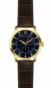 Band Material : Leather, Band Tone : Dark Brown,Band Size [mm] : 22, Band Length [mm] : 205, Buckle Type: Buckle, Crown Type :Push, Case Material : Stainless Steel, Case Tone : Gold, Case Size [mm] :44, Case Back : Solid, Material of Hands : Metal, Color of Hands : Gold, Crystal Type : Flame Fusion, Dial Material : Metal, Dial Color : Blue, Dial Pattern : Textured Pattern .Purchasing these parts and having a non-authorized repair center open your watch voids all manufacturing warranties. Invicta cannot guarantee the quality standards of an altered timepiece, the standard 3-year limited warranty on Invicta timepieces shall be invalid if the timepiece is serviced at any time by an unauthorized repair center. This includes battery replacements, which must be done at an Invicta authorized repair center in order to maintain the eligibility of the warranty. Please follow the link below to learn more about Invicta's warranty.https://cdn.invictawatch.com/www/files/invicta-warranty-2018.pdf