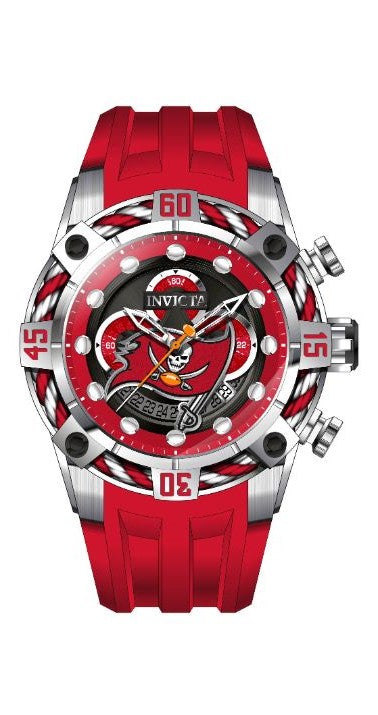 Band Material: Silicone, Band Tone: Red, Band Width: 32MM, Band Length: 210MM, Crown Type: Push, Case Material: Stainless Steel, Case Tone: Silver, Case Size [mm]: 52, Color of Hands: Orange, Silver, White, Crystal Type: Flame Fusion, Bezel Material: Cable, Stainless Steel, Dial Material: Metal, Dial Color: Red, White, Black .Purchasing these parts and having a non-authorized repair center open your watch voids all manufacturing warranties. Invicta cannot guarantee the quality standards of an altered timepiece, the standard 3-year limited warranty on Invicta timepieces shall be invalid if the timepiece is serviced at any time by an unauthorized repair center. This includes battery replacements, which must be done at an Invicta authorized repair center in order to maintain the eligibility of the warranty. Please follow the link below to learn more about Invicta's warranty.https://cdn.invictawatch.com/www/files/invicta-warranty-2018.pdf