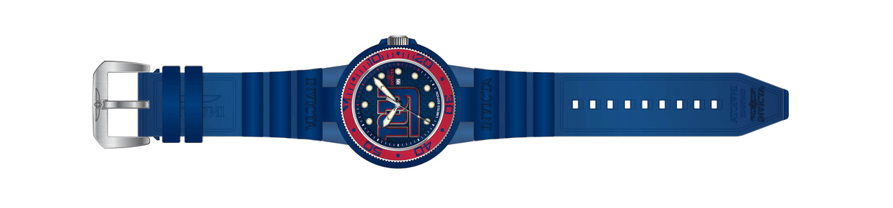 Parts for Invicta NFL 41451, New York Giants, Band Material: Silicone, Band Tone: Transparent, Blue, Band Width: 29.8MM, Band Length: 210MM, Crown Type: Push, Case Material: Aluminum, Plastic, Stainless Steel, Case Tone: Steel, Red, Blue, Case Size [mm]: 51.50, Color of Hands: Luminous, Silver, Crystal Type: Mineral, Bezel Material: Aluminum, Stainless Steel, Dial Material: Metal, Dial Color: Navy Blue, Red .Purchasing these parts and having a non-authorized repair center open your watch voids all manufacturing warranties. Invicta cannot guarantee the quality standards of an altered timepiece, the standard 3-year limited warranty on Invicta timepieces shall be invalid if the timepiece is serviced at any time by an unauthorized repair center. This includes battery replacements, which must be done at an Invicta authorized repair center in order to maintain the eligibility of the warranty. Please follow the link below to learn more about Invicta's warranty.https://cdn.invictawatch.com/www/files/invicta-warranty-2018.pdf