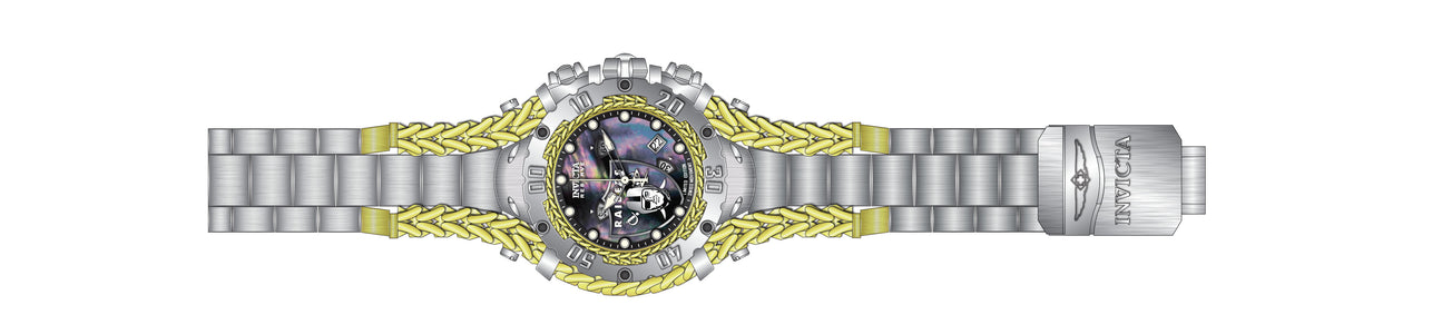 Band Material: Stainless Steel, Band Tone: Gold, Steel, Band Width: 41MM, Band Length: 210MM, Crown Type: Screw Down, Case Material: Stainless Steel, Case Tone: Steel, Gold, Case Size [mm]: 55.25, Color of Hands: Luminous, Silver, Crystal Type: Flame Fusion, Bezel Material: Stainless Steel, Dial Material: Oyster, Mother of Pearl, Metal, Dial Color: White, Black .Purchasing these parts and having a non-authorized repair center open your watch voids all manufacturing warranties. Invicta cannot guarantee the quality standards of an altered timepiece, the standard 3-year limited warranty on Invicta timepieces shall be invalid if the timepiece is serviced at any time by an unauthorized repair center. This includes battery replacements, which must be done at an Invicta authorized repair center in order to maintain the eligibility of the warranty. Please follow the link below to learn more about Invicta's warranty.https://cdn.invictawatch.com/www/files/invicta-warranty-2018.pdf