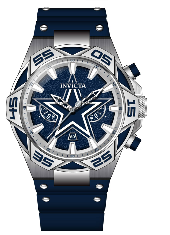 Band Material: Silicone, Stainless Steel, Band Tone: Blue, Steel, Band Width: 30MM, Band Length: 210MM, Crown Type: Push, Case Material: Stainless Steel, Case Tone: Silver, Case Size [mm]: 52, Color of Hands: Grey, Silver, White, Crystal Type: Flame Fusion, Bezel Material: Stainless Steel, Dial Material: Metal, Dial Color: Silver, White, Blue .Purchasing these parts and having a non-authorized repair center open your watch voids all manufacturing warranties. Invicta cannot guarantee the quality standards of an altered timepiece, the standard 3-year limited warranty on Invicta timepieces shall be invalid if the timepiece is serviced at any time by an unauthorized repair center. This includes battery replacements, which must be done at an Invicta authorized repair center in order to maintain the eligibility of the warranty. Please follow the link below to learn more about Invicta's warranty.https://cdn.invictawatch.com/www/files/invicta-warranty-2018.pdf