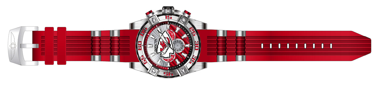 Band Material: Silicone, Stainless Steel, Band Tone: Red, Steel, Band Width: 26MM, Band Length: 210MM, Crown Type: Push, Case Material: Stainless Steel, Case Tone: Silver, Case Size [mm]: 52, Color of Hands: Silver, White, Crystal Type: Flame Fusion, Bezel Material: Cable, Stainless Steel, Dial Material: Glass Fiber, Metal, Dial Color: Red, Silver, White, Black .Purchasing these parts and having a non-authorized repair center open your watch voids all manufacturing warranties. Invicta cannot guarantee the quality standards of an altered timepiece, the standard 3-year limited warranty on Invicta timepieces shall be invalid if the timepiece is serviced at any time by an unauthorized repair center. This includes battery replacements, which must be done at an Invicta authorized repair center in order to maintain the eligibility of the warranty. Please follow the link below to learn more about Invicta's warranty.https://cdn.invictawatch.com/www/files/invicta-warranty-2018.pdf