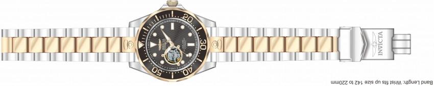 Individual Spare PARTS For Men Invicta Pro Diver 13708, Band Material Stainless Steel, Band Color Rose Gold, Steel, Band Width 22 MM, Band Length 215 MM, Buckle Type Diver, Clasp Type Deployment, Safety, Crown Type Screw Down, Case Material Stainless Steel, Case Tone Rose Gold, Steel, Case Size (mm) 47, Case Back Exhibition, Material of Hands Metal, Color of Hands Rose Gold, Luminous, Crystal Type Mineral, Bezel Material Stainless Steel, Dial Material Metal, Dial Color Black, Dial Pattern GuillochePurchasing these parts and having a non-authorized repair center open your watch voids all manufacturing warranties. Invicta cannot guarantee the quality standards of an altered timepiece, the standard 3-year limited warranty on Invicta timepieces shall be invalid if the timepiece is serviced at any time by an unauthorized repair center. This includes battery replacements, which must be done at an Invicta authorized repair center in order to maintain the eligibility of the warranty. Please follow the link below to learn more about Invicta's warranty.https://cdn.invictawatch.com/www/files/invicta-warranty-2018.pdf