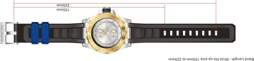 Individual Spare PARTS For Men Invicta Pro Diver 13994, Band Material Polyurethane, Band Color Blue, Black, Band Width 22 MM, Band Length 225 MM, Buckle Type Regular, Clasp Type Regular, Crown Type Push, Case Material Stainless Steel, Case Tone Gold, Steel, Case Size (mm) 43, Case Back Solid, Material of Hands Metal, Color of Hands Gold, Luminous, Crystal Type Flame Fusion, Bezel Material Stainless Steel, Dial Material Metal, Dial Color Silver, Dial Pattern TexturedPurchasing these parts and having a non-authorized repair center open your watch voids all manufacturing warranties. Invicta cannot guarantee the quality standards of an altered timepiece, the standard 3-year limited warranty on Invicta timepieces shall be invalid if the timepiece is serviced at any time by an unauthorized repair center. This includes battery replacements, which must be done at an Invicta authorized repair center in order to maintain the eligibility of the warranty. Please follow the link below to learn more about Invicta's warranty.https://cdn.invictawatch.com/www/files/invicta-warranty-2018.pdf