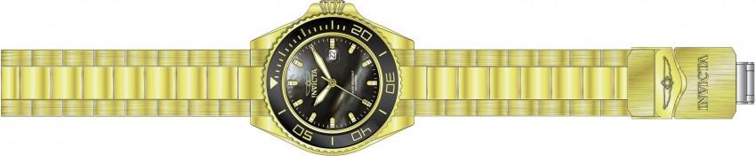 Individual Spare PARTS For Men Invicta Pro Diver 23072, Band Material Stainless Steel, Band Color Gold, Band Width 22 MM, Band Length 210 MM, Buckle Type Diver, Clasp Type Deployment, Safety, Crown Type Screw Down, Case Material Stainless Steel, 14K Yellow Gold, Case Tone Gold, Black, Case Size (mm) 48, Case Back Solid, Material of Hands Metal, Color of Hands Gold, Luminous, Crystal Type Mineral, Bezel Material Stainless Steel, Aluminum, Dial Material Mother of Pearl, Oyster, Dial Color Black, Dial Pattern NonePurchasing these parts and having a non-authorized repair center open your watch voids all manufacturing warranties. Invicta cannot guarantee the quality standards of an altered timepiece, the standard 3-year limited warranty on Invicta timepieces shall be invalid if the timepiece is serviced at any time by an unauthorized repair center. This includes battery replacements, which must be done at an Invicta authorized repair center in order to maintain the eligibility of the warranty. Please follow the link below to learn more about Invicta's warranty.https://cdn.invictawatch.com/www/files/invicta-warranty-2018.pdf