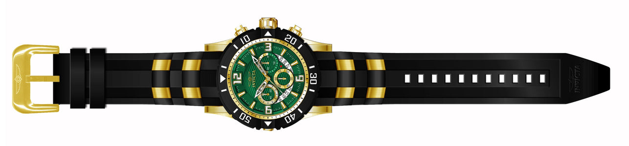 Individual Spare PARTS For Invicta Pro Diver 23703, Band Material: Polyurethane, Stainless Steel, Band Tone: Black, Gold, Band Size (mm): 26, Band Length (mm): 200, Buckle Type: Regular, Clasp Type: Regular, Crown Type Push, Case Material Stainless Steel, Case Tone Gold, Case Size (mm) 50, Case Back Solid, Material of Hands Metal, Color of Hands Gold, Crystal Type Flame Fusion, Bezel Material Stainless Steel, Dial Material Copper, Dial Color Green, Dial Pattern NonePurchasing these parts and having a non-authorized repair center open your watch voids all manufacturing warranties. Invicta cannot guarantee the quality standards of an altered timepiece, the standard 3-year limited warranty on Invicta timepieces shall be invalid if the timepiece is serviced at any time by an unauthorized repair center. This includes battery replacements, which must be done at an Invicta authorized repair center in order to maintain the eligibility of the warranty. Please follow the link below to learn more about Invicta's warranty.https://cdn.invictawatch.com/www/files/invicta-warranty-2018.pdf