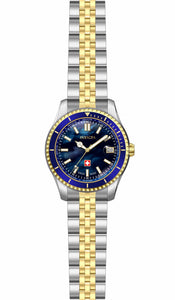 INVICTA Pro Diver Swiss Made Lady 34mm Stainless Steel Gold + Steel Blue dial 505 Quartz , Band Material: Stainless Steel, Band Tone: Steel,Gold, Band Size [mm]: 16, Band Length [mm]: 190, Buckle Type: Fold over safety , Crown Type : Push, Case Material : Stainless Steel, Case Tone : Gold,Steel, Case Size (mm) : 34, Case Back : Solid, Material of Hands : Metal, Color of Hands : Gold,Luminous, Crystal Type : Flame Fusion, Bezel Material : Stainless Steel, Dial Material : Mother of Pearl, Dial Color : Blue, Dial Pattern : None .Purchasing these parts and having a non-authorized repair center open your watch voids all manufacturing warranties. Invicta cannot guarantee the quality standards of an altered timepiece, the standard 3-year limited warranty on Invicta timepieces shall be invalid if the timepiece is serviced at any time by an unauthorized repair center. This includes battery replacements, which must be done at an Invicta authorized repair center in order to maintain the eligibility of the warranty. Please follow the link below to learn more about Invicta's warranty.https://cdn.invictawatch.com/www/files/invicta-warranty-2018.pdf