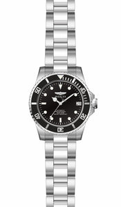 INVICTA Pro Diver Lady 36mm Stainless Steel Steel Black dial NH35A Automatic , Band Material: Stainless Steel, Band Tone: Steel, Band Size [mm]: 18, Band Length [mm]: 190, Buckle Type: Fold over safety , Crown Type : Screw Down, Case Material : Stainless Steel, Case Tone : Steel, Case Size (mm) : 36, Case Back : Exhibition, Material of Hands : Metal, Color of Hands : Silver,Luminous, Crystal Type : Mineral, Bezel Material : Stainless Steel, Dial Material : Metal, Dial Color : Black, Dial Pattern : None .Purchasing these parts and having a non-authorized repair center open your watch voids all manufacturing warranties. Invicta cannot guarantee the quality standards of an altered timepiece, the standard 3-year limited warranty on Invicta timepieces shall be invalid if the timepiece is serviced at any time by an unauthorized repair center. This includes battery replacements, which must be done at an Invicta authorized repair center in order to maintain the eligibility of the warranty. Please follow the link below to learn more about Invicta's warranty.https://cdn.invictawatch.com/www/files/invicta-warranty-2018.pdf