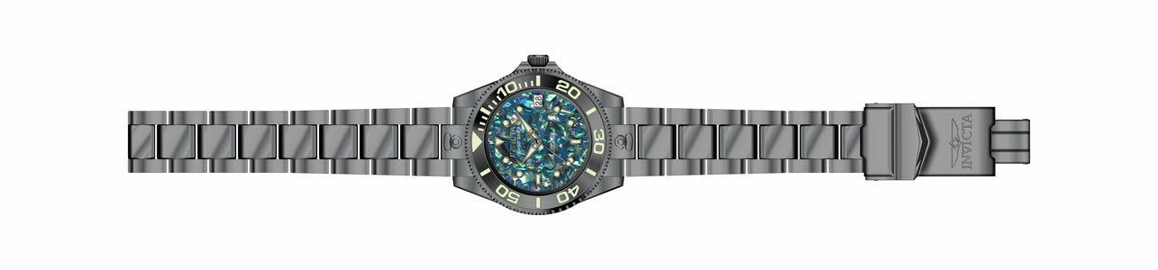 INVICTA Pro Diver Lady 38mm Stainless Steel Gunmetal Blue dial NH35A Automatic , Band Material: Stainless Steel, Band Tone: Gunmetal, Band Size [mm]: 18, Band Length [mm]: 195, Buckle Type: Fold over safety , Crown Type : Screw Down, Case Material : Stainless Steel, Case Tone : Gunmetal, Case Size (mm) : 38, Case Back : Exhibition, Material of Hands : Metal, Color of Hands : Luminous,Gunmetal, Crystal Type : Mineral, Bezel Material : Stainless Steel, Dial Material : Mother of Pearl,Abalone, Dial Color : Blue, Dial Pattern : None .Purchasing these parts and having a non-authorized repair center open your watch voids all manufacturing warranties. Invicta cannot guarantee the quality standards of an altered timepiece, the standard 3-year limited warranty on Invicta timepieces shall be invalid if the timepiece is serviced at any time by an unauthorized repair center. This includes battery replacements, which must be done at an Invicta authorized repair center in order to maintain the eligibility of the warranty. Please follow the link below to learn more about Invicta's warranty.https://cdn.invictawatch.com/www/files/invicta-warranty-2018.pdf