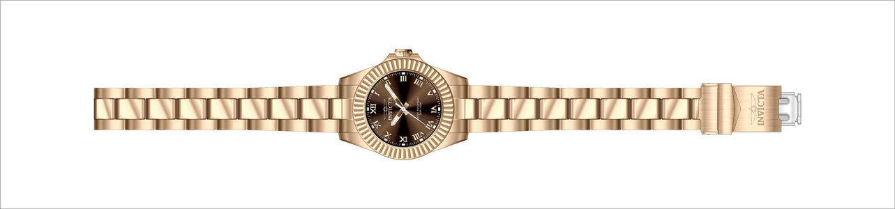 INVICTA Pro Diver Lady 34mm Stainless Steel Rose Gold Brown dial PC21J Quartz , Band Material: Stainless Steel, Band Tone: Rose Gold, Band Size [mm]: 16, Band Length [mm]: 195, Buckle Type: Fold over safety , Crown Type : Push, Case Material : Stainless Steel, Case Tone : Rose Gold, Case Size (mm) : 34, Case Back : Solid, Material of Hands : Metal, Color of Hands : Rose Gold,Luminous, Crystal Type : Mineral, Bezel Material : Stainless Steel, Dial Material : Metal, Dial Color : Brown, Dial Pattern : Sun-ray Finish .Purchasing these parts and having a non-authorized repair center open your watch voids all manufacturing warranties. Invicta cannot guarantee the quality standards of an altered timepiece, the standard 3-year limited warranty on Invicta timepieces shall be invalid if the timepiece is serviced at any time by an unauthorized repair center. This includes battery replacements, which must be done at an Invicta authorized repair center in order to maintain the eligibility of the warranty. Please follow the link below to learn more about Invicta's warranty.https://cdn.invictawatch.com/www/files/invicta-warranty-2018.pdf