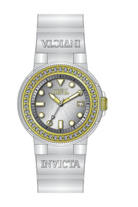 INVICTA Pro Diver Lady 40.00mm Stainless Steel + Plastic + Crystal Gold + White + Steel Silver dial PC32 Quartz , Band Material: Silicone, Band Tone: White, Band Size [mm]: 23.5, Band Length [mm]: 185, Buckle Type: Buckle , Crown Type : Push, Case Material : Stainless Steel,Plastic,Crystal, Case Tone : Gold,White,Steel, Case Size (mm) : 40, Case Back : Solid, Material of Hands : Metal, Color of Hands : Gold,Luminous, Crystal Type : Mineral, Bezel Material : Stainless Steel,Crystal, Dial Material : Metal, Dial Color : Silver, Dial Pattern : Sun-ray Finish .Purchasing these parts and having a non-authorized repair center open your watch voids all manufacturing warranties. Invicta cannot guarantee the quality standards of an altered timepiece, the standard 3-year limited warranty on Invicta timepieces shall be invalid if the timepiece is serviced at any time by an unauthorized repair center. This includes battery replacements, which must be done at an Invicta authorized repair center in order to maintain the eligibility of the warranty. Please follow the link below to learn more about Invicta's warranty.https://cdn.invictawatch.com/www/files/invicta-warranty-2018.pdf