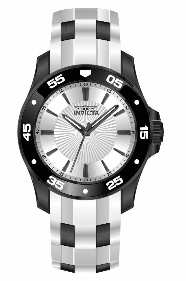 Band Material: Stainless Steel,Silicone, Band Tone: Black,White, Band Width: 20MM, Band Length: 190MM, Crown Type: Push, Case Material: Stainless Steel, Case Tone: Black, Case Size [mm]: 38, Case Back: Solid, Material of Hands: Metal, Color of Hands: Black, Crystal Type: Flame Fusion, Bezel Material: Stainless Steel,Aluminum, Dial Material: Metal, Dial Color: Silver .Purchasing these parts and having a non-authorized repair center open your watch voids all manufacturing warranties. Invicta cannot guarantee the quality standards of an altered timepiece, the standard 3-year limited warranty on Invicta timepieces shall be invalid if the timepiece is serviced at any time by an unauthorized repair center. This includes battery replacements, which must be done at an Invicta authorized repair center in order to maintain the eligibility of the warranty. Please follow the link below to learn more about Invicta's warranty.https://cdn.invictawatch.com/www/files/invicta-warranty-2018.pdf