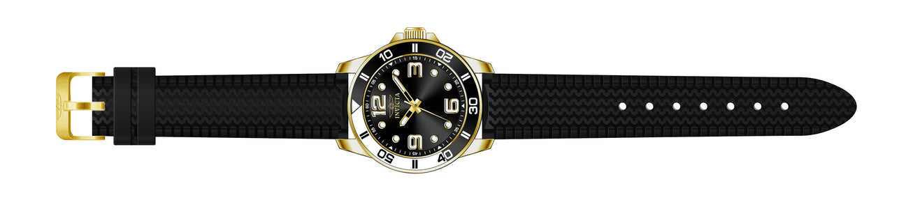 INVICTA Pro Diver Men 45mm Stainless Steel Gold Black dial PC21 Quartz , Band Material: Silicone, Band Tone: Black, Band Size [mm]: 22, Band Length [mm]: 210, Buckle Type: Buckle , Crown Type : Push, Case Material : Stainless Steel, Case Tone : Gold, Case Size (mm) : 45, Case Back : Solid, Material of Hands : Metal, Color of Hands : White,Gold, Crystal Type : Flame Fusion, Bezel Material : Stainless Steel, Dial Material : Metal, Dial Color : Black, Dial Pattern : Sun-ray Finish .Purchasing these parts and having a non-authorized repair center open your watch voids all manufacturing warranties. Invicta cannot guarantee the quality standards of an altered timepiece, the standard 3-year limited warranty on Invicta timepieces shall be invalid if the timepiece is serviced at any time by an unauthorized repair center. This includes battery replacements, which must be done at an Invicta authorized repair center in order to maintain the eligibility of the warranty. Please follow the link below to learn more about Invicta's warranty.https://cdn.invictawatch.com/www/files/invicta-warranty-2018.pdf