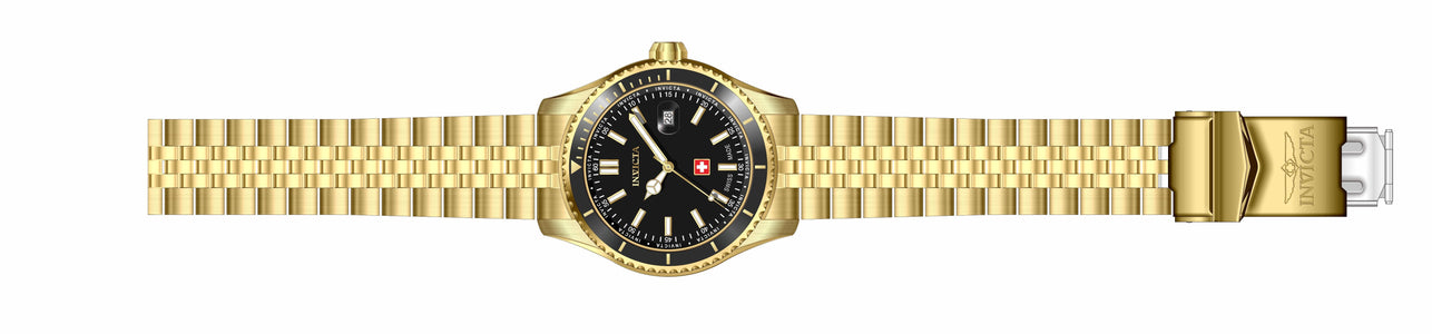 INVICTA Pro Diver Swiss Made Men 46mm Stainless Steel Gold Black dial 515 Quartz , Band Material: Stainless Steel, Band Tone: Gold, Band Size [mm]: 22, Band Length [mm]: 215, Buckle Type: Fold over safety , Crown Type : Push, Case Material : Stainless Steel, Case Tone : Gold, Case Size (mm) : 46, Case Back : Solid, Material of Hands : Metal, Color of Hands : Gold,Luminous, Crystal Type : Flame Fusion, Bezel Material : Stainless Steel, Dial Material : Metal, Dial Color : Black, Dial Pattern : None .Purchasing these parts and having a non-authorized repair center open your watch voids all manufacturing warranties. Invicta cannot guarantee the quality standards of an altered timepiece, the standard 3-year limited warranty on Invicta timepieces shall be invalid if the timepiece is serviced at any time by an unauthorized repair center. This includes battery replacements, which must be done at an Invicta authorized repair center in order to maintain the eligibility of the warranty. Please follow the link below to learn more about Invicta's warranty.https://cdn.invictawatch.com/www/files/invicta-warranty-2018.pdf