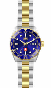INVICTA Pro Diver Swiss Made Men 44mm Stainless Steel Gold + Steel Blue dial 515 Quartz , Band Material: Stainless Steel, Band Tone: Steel,Gold, Band Size [mm]: 22, Band Length [mm]: 215, Buckle Type: Fold over safety , Crown Type : Push, Case Material : Stainless Steel, Case Tone : Gold,Steel, Case Size (mm) : 44, Case Back : Solid, Material of Hands : Metal, Color of Hands : Gold,Luminous, Crystal Type : Flame Fusion, Bezel Material : Stainless Steel, Dial Material : Metal, Dial Color : Blue, Dial Pattern : Sun-ray Finish .Purchasing these parts and having a non-authorized repair center open your watch voids all manufacturing warranties. Invicta cannot guarantee the quality standards of an altered timepiece, the standard 3-year limited warranty on Invicta timepieces shall be invalid if the timepiece is serviced at any time by an unauthorized repair center. This includes battery replacements, which must be done at an Invicta authorized repair center in order to maintain the eligibility of the warranty. Please follow the link below to learn more about Invicta's warranty.https://cdn.invictawatch.com/www/files/invicta-warranty-2018.pdf