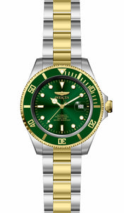 INVICTA Pro Diver Men 47mm Stainless Steel Gold + Steel Green dial NH35A Automatic , Band Material: Stainless Steel, Band Tone: Steel,Gold, Band Size [mm]: 22, Band Length [mm]: 215, Buckle Type: Fold over safety , Crown Type : Screw Down, Case Material : Stainless Steel, Case Tone : Gold,Steel, Case Size (mm) : 47, Case Back : Exhibition, Material of Hands : Metal, Color of Hands : Gold,Luminous, Crystal Type : Mineral, Bezel Material : Stainless Steel, Dial Material : Metal, Dial Color : Green, Dial Pattern : Sun-ray Finish .Purchasing these parts and having a non-authorized repair center open your watch voids all manufacturing warranties. Invicta cannot guarantee the quality standards of an altered timepiece, the standard 3-year limited warranty on Invicta timepieces shall be invalid if the timepiece is serviced at any time by an unauthorized repair center. This includes battery replacements, which must be done at an Invicta authorized repair center in order to maintain the eligibility of the warranty. Please follow the link below to learn more about Invicta's warranty.https://cdn.invictawatch.com/www/files/invicta-warranty-2018.pdf